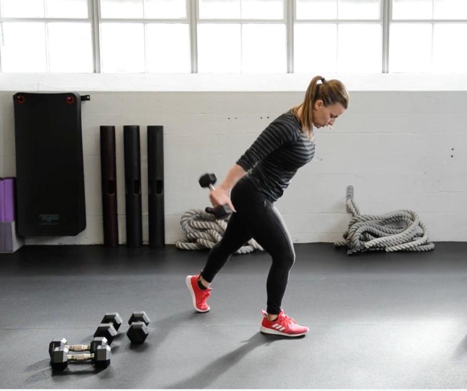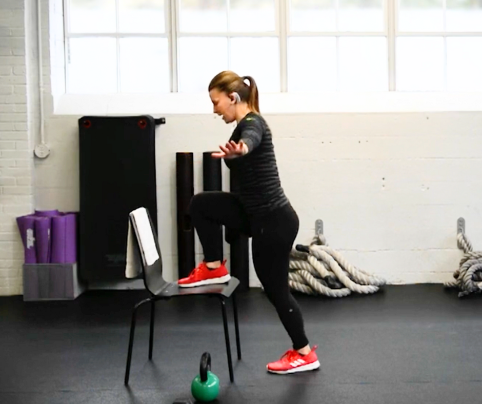 You’ll rotate through upper body, lower body, full body, and a simple HIIT session using dumbbells and a chair.