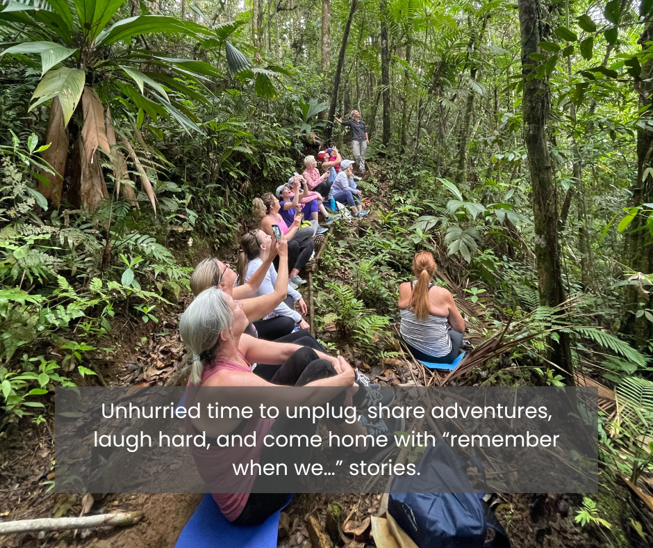 You’ll laugh, explore, and reconnect in ways that feel light, real, and unforgettable—leaving with shared stories, inside jokes, and a deeper bond, all wrapped in the magic of Pura Vida.